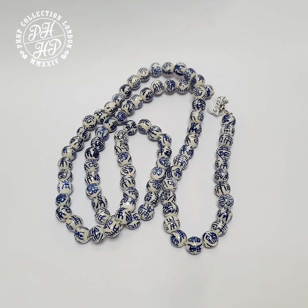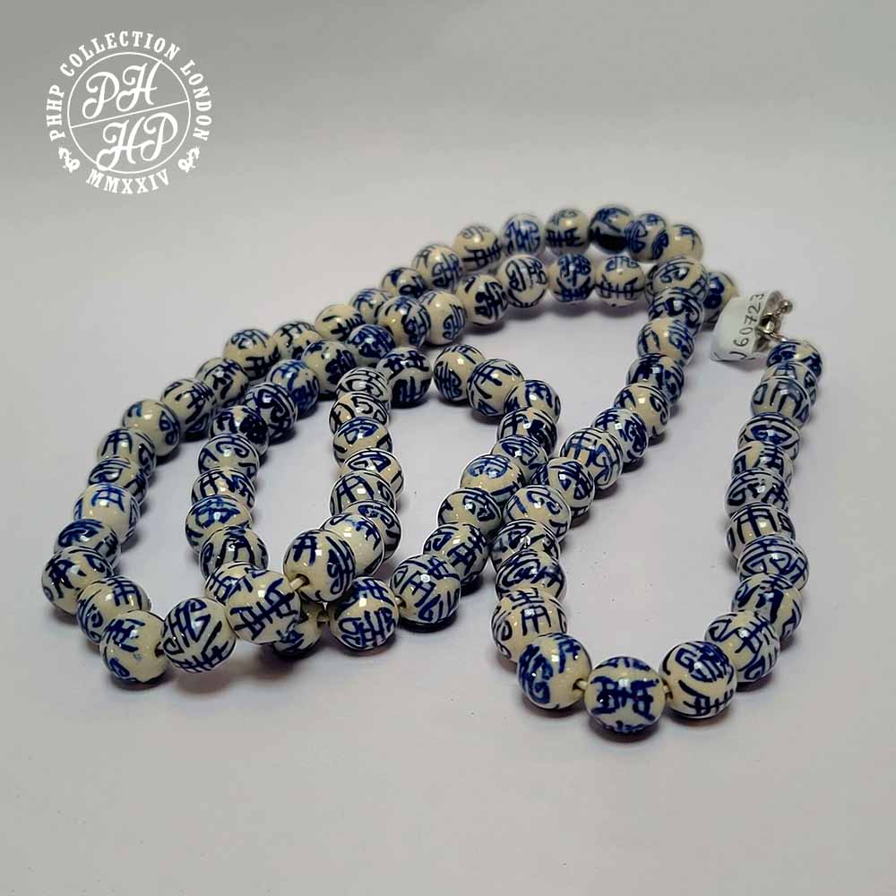 The porcelain beads were most sought after prayer instrument for the Chinese Scholars and monks during various dynasties of China. During late Ming and Qing dynasty it became popular among aristocratic urban people. There are 86 pieces of beads in this beads. All letters are hand written and completes a cycle of holy chanting words written in cobalt blue in under-glaze. Truly attractive and sought after for collectors of porcelain collectibles and artifacts.