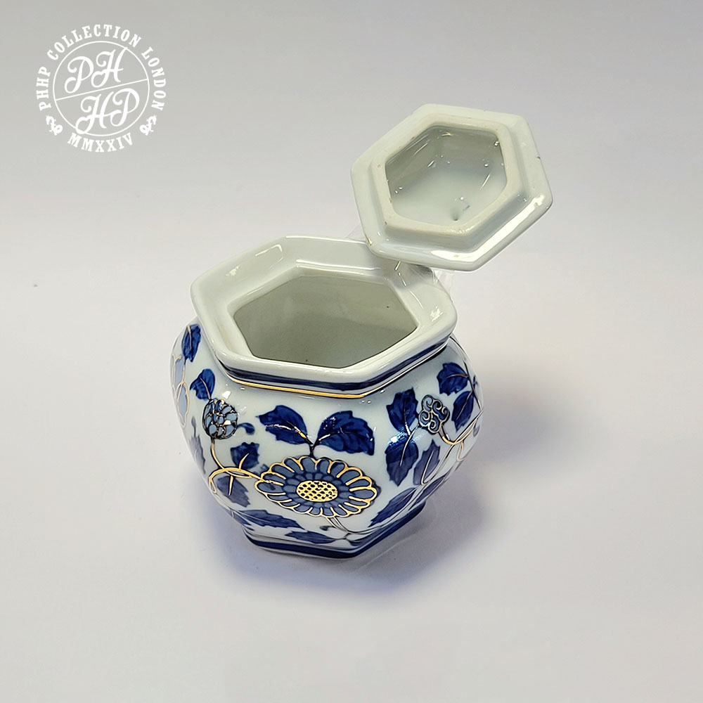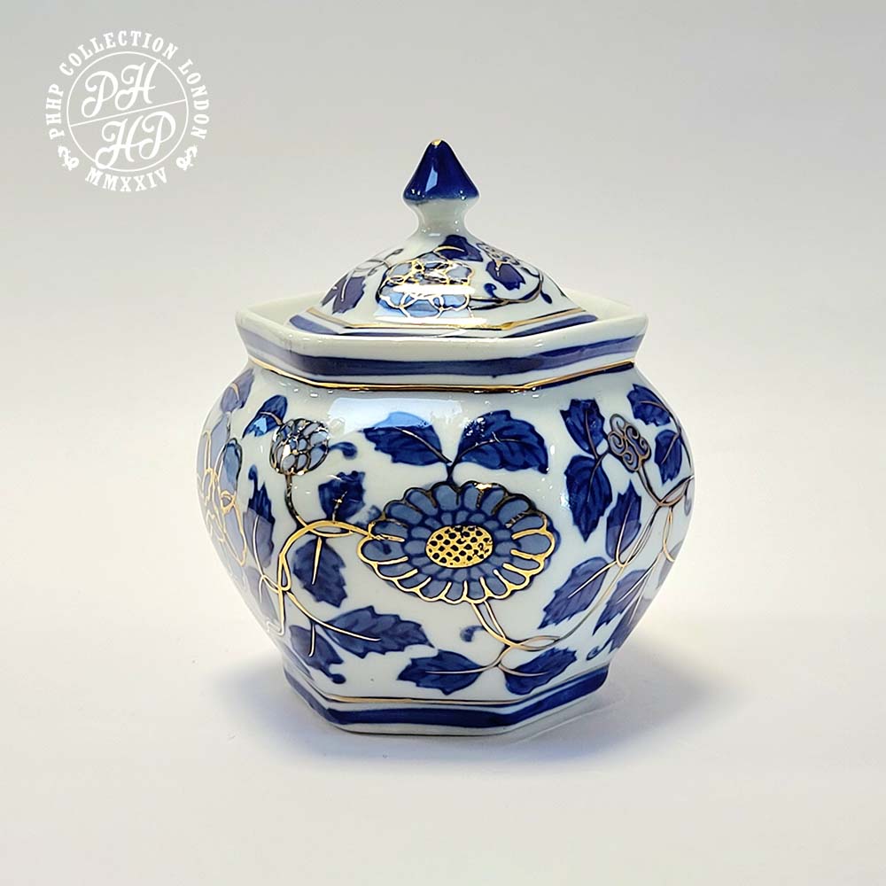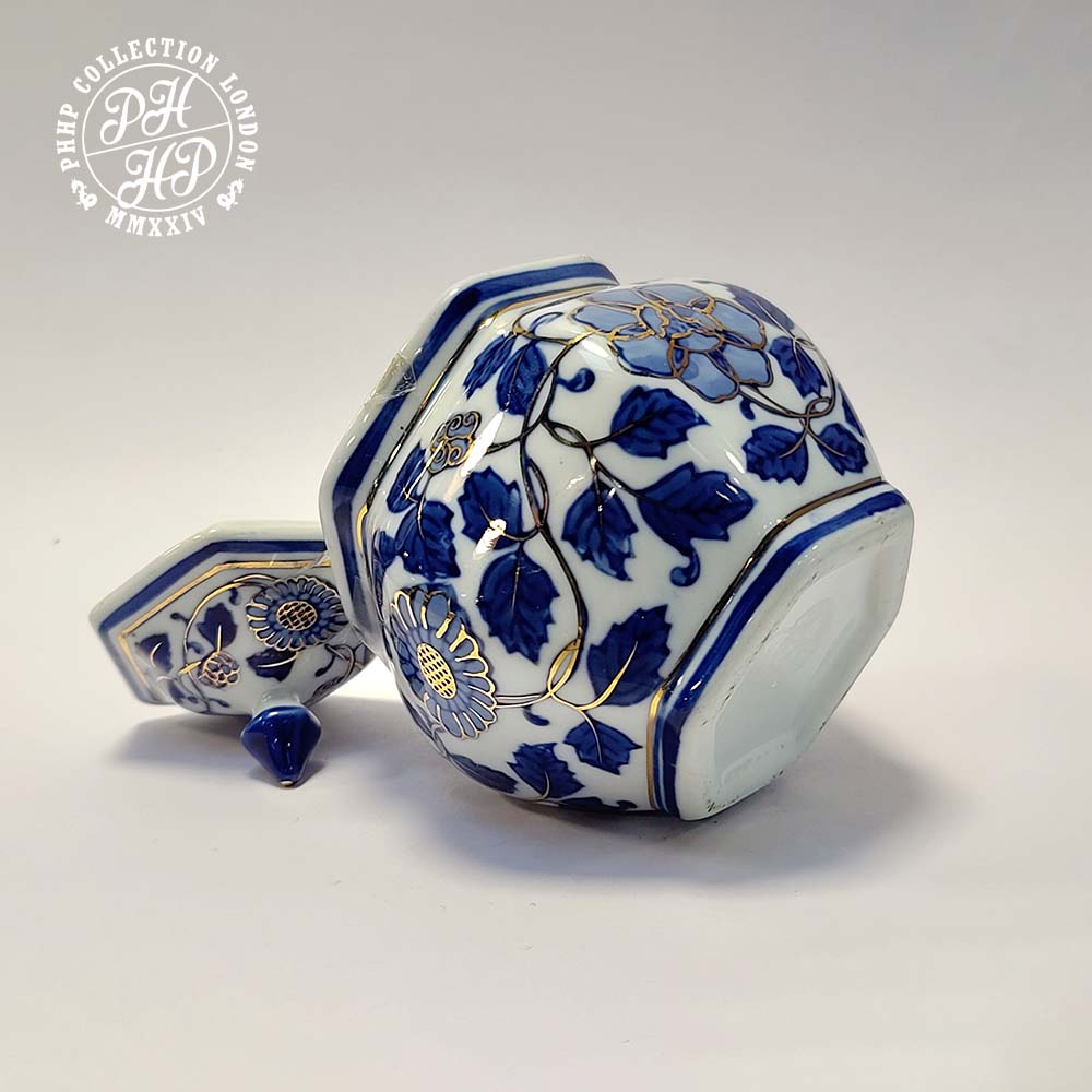 This hand painted in cobalt blue in underglaze porcelain is an innovative styles introduced in the early republican period Chinese porcelain. This ginger jar on with lid, shows the generosity of gold gilding trimmed with black enamel. Excellent quality for its decor and rarity as the collective porcelain piece of 20th century porcelain production.