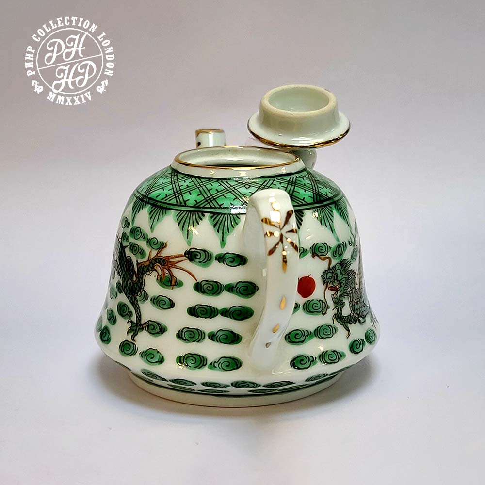 The fine detailed drawings of the fire spitting moving dragon on its mouth shows the authentic Qing Dynasty style and the quality of featuring the dragon. Whilst thinly painted green enamels with dark ink drawings with red dot are the key characteristics of the porcelains designed and produced for the imperial household usage, known as Guanyo Variety.