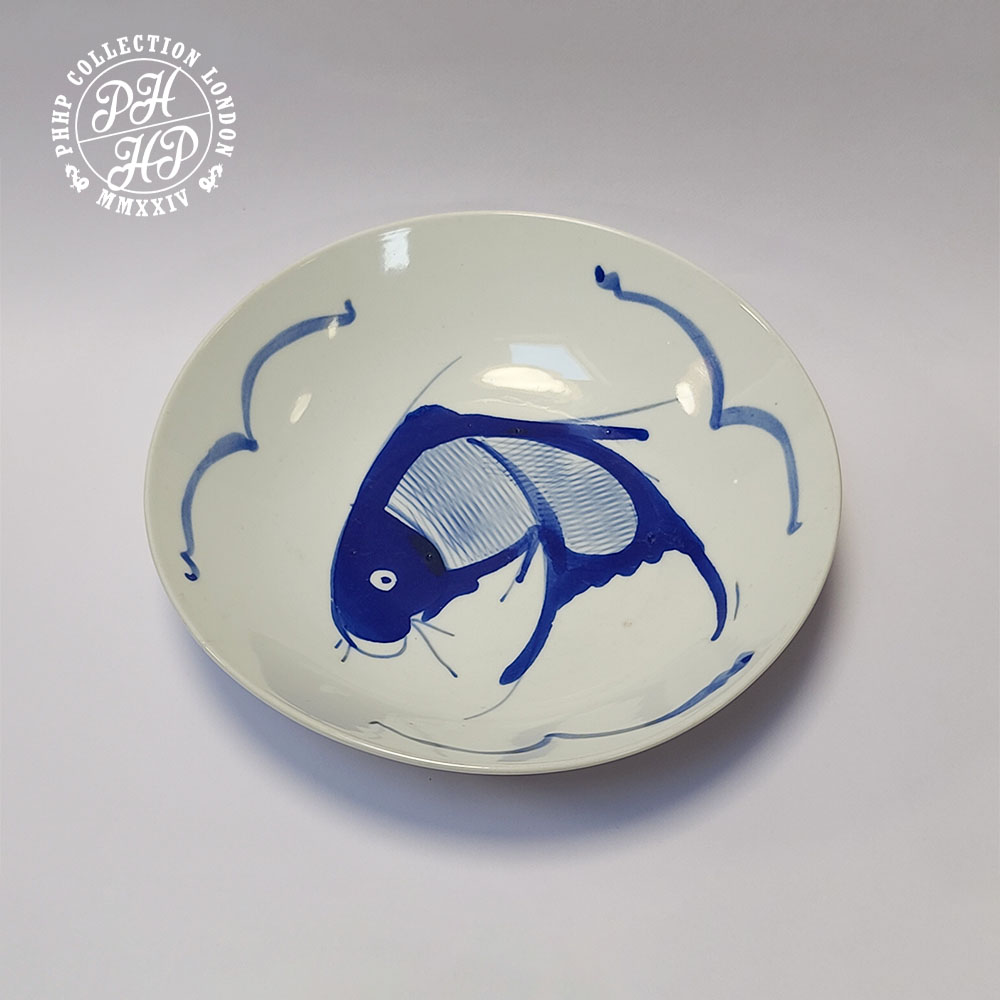 These hand painted yellowish red gold fish bowls in cobalt blue in underglaze porcelain bowls are rare to find in collection as time has gone by. These large bowls are made as the export quality porcelain for the European market. These bowls are designed to be the household usage products, but usage not intended but for art decorative purpose only. These carp fish cobalt blue porcelains are becoming rarity and hence highly sought after for the collectors and museums or porcelain producers.