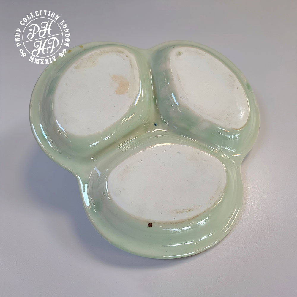 This exceptional quality, completely hand made, triangular tray is an unusual calibre of works of arts in cobalt blue painted in under glaze. The flowers and stems and leaves depict the crisp freshness of finest quality drawings. This porcelain tray is very old and it could be the porcelain made in the early Ming period. The spotted iron oxide break out at the back shows this tray has had its time as an ancient piece. It is extremely heavy weighing nearly 1Kg and exceptional in quality for its rarity.