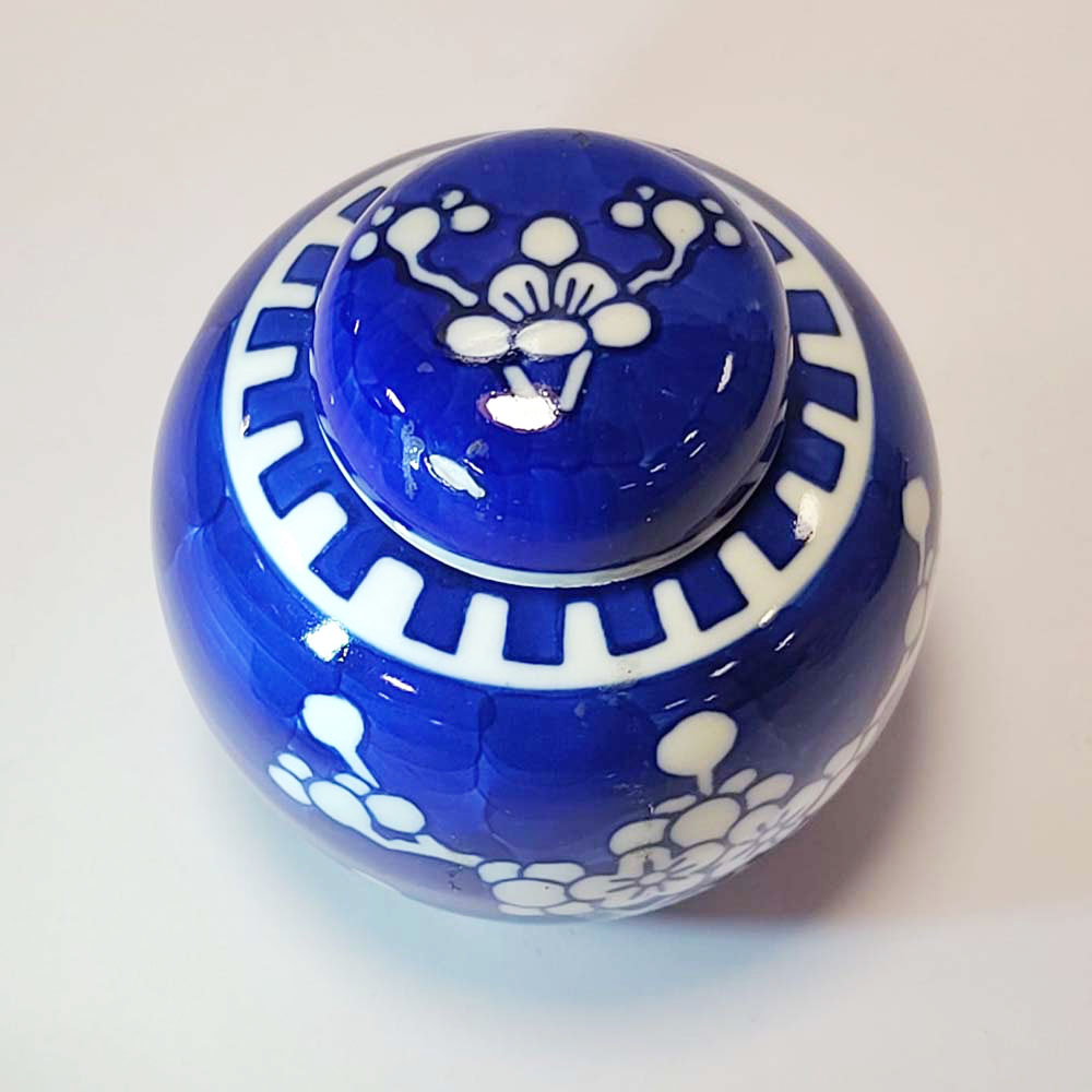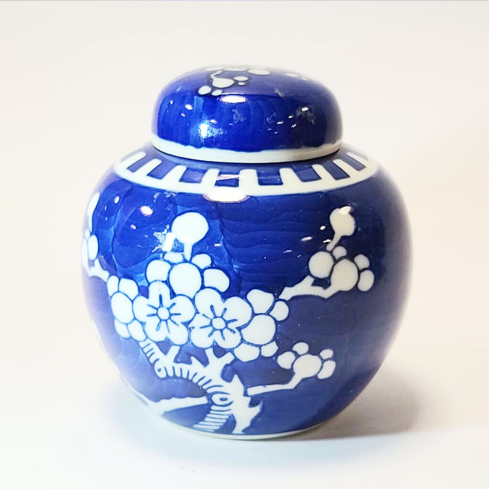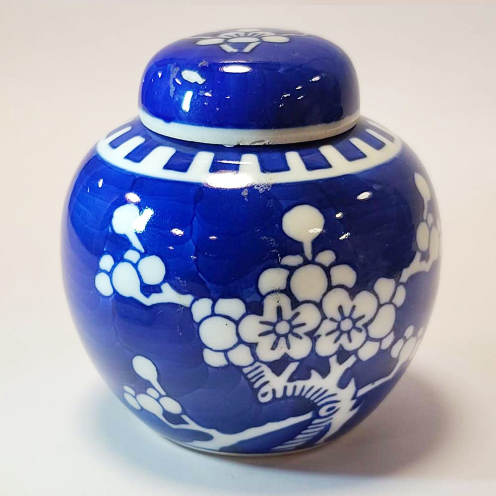 The Prunus, Hawthorne, blossoms on a background of cracked ice paint maybe signifying the jar was presented as precious new years gift.products