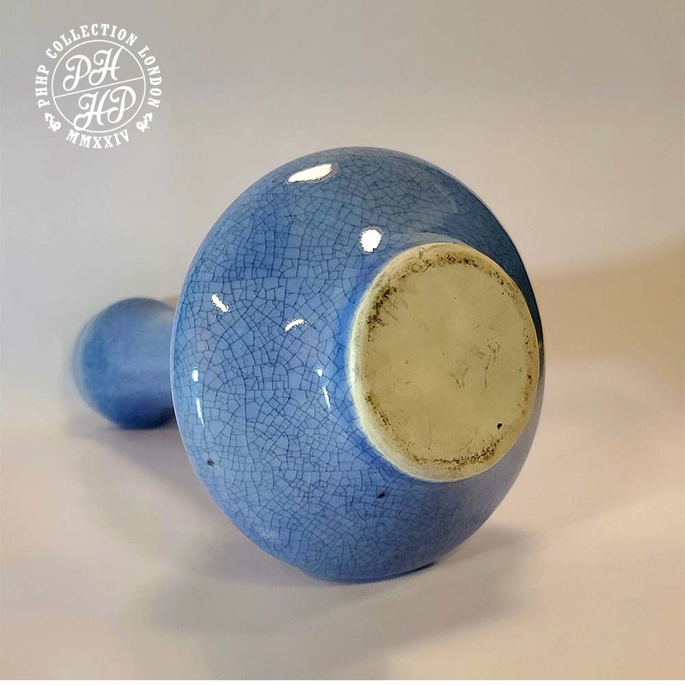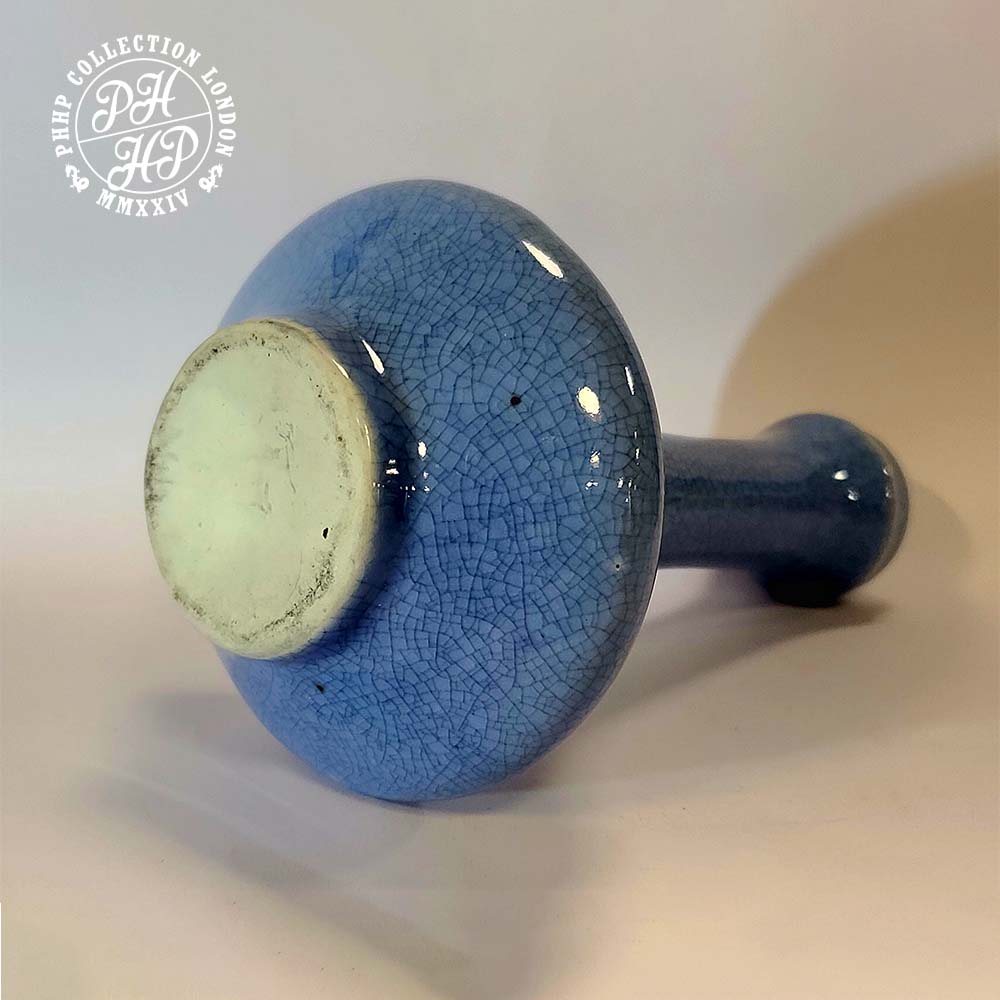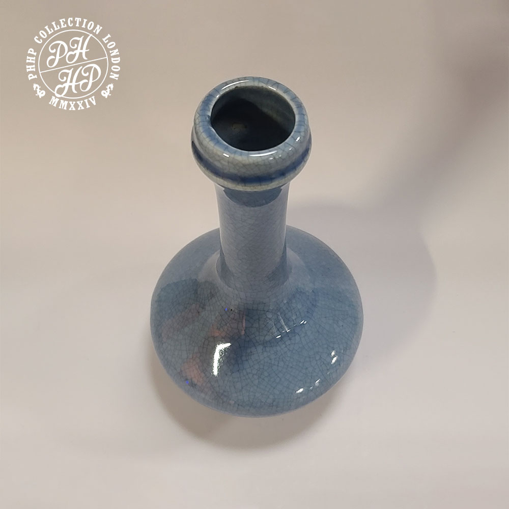 Monochromatic crackled glaze, decorative flower vase, likely to have fired at the Cizhou Klin. The aesthetic perfection with of crackled glaze with all the features of old age iron oxide formation in places, whilst in an excellent condition, makes this vase, a very rare, most desired and collectable blue to whitish Song Dynasty Celadon Vase. It remains one of a kind and truly majestic in its shape, size and posture. Most sought after item for the ancient Chinese Antiques Porcelain Collector(s) or Museum.